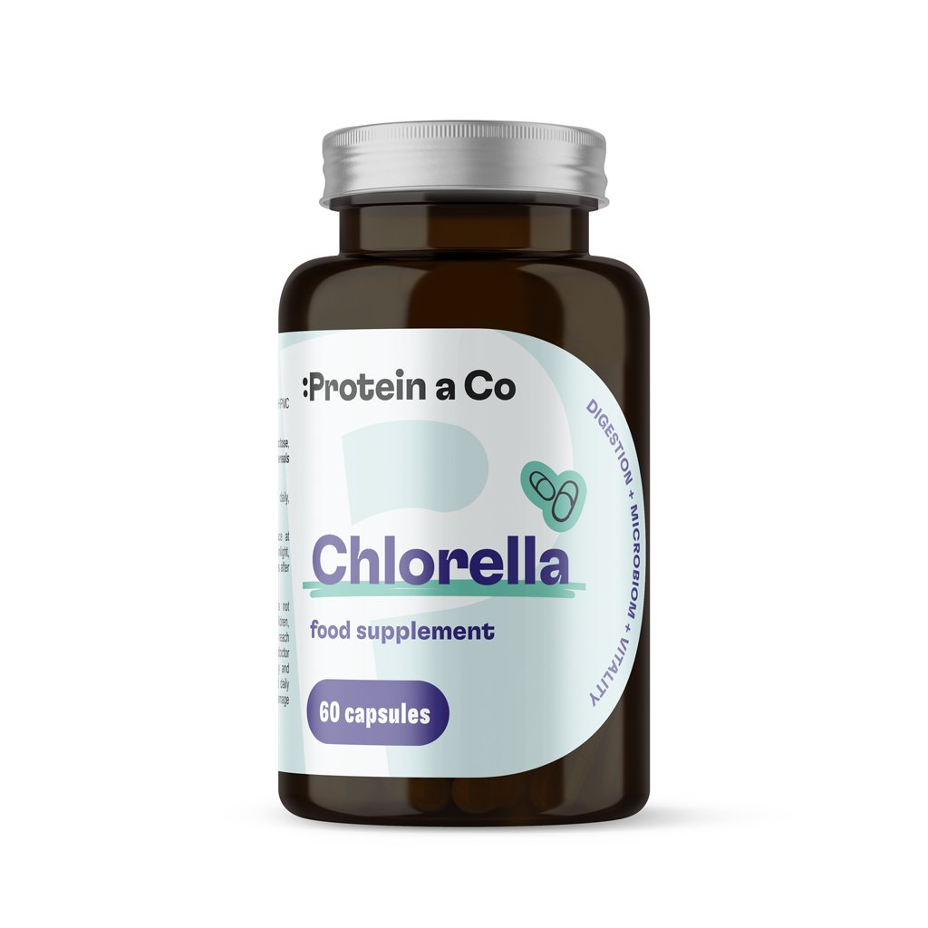 Chlorella w proszku, kapsułka wegańska HPMC.
