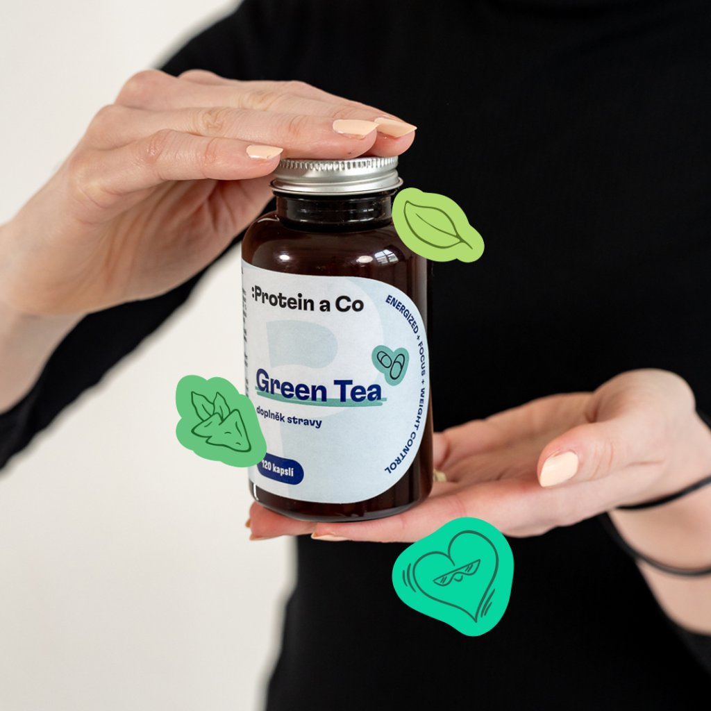 Kofeina odgrywa w herbacie nieco inną rolę niż zwykle nam się wydaje. Jest uwalniana wolniej niż w przypadku kawy, ponieważ wiąże się z polifenolami. W odróżnieniu od kawy, która działa pobudzająco, zielona herbata jest bardziej orzeźwiająca. Pobudza umysł i ciało, ale jednocześnie działa uspokajająco i ma działanie harmonizujące. Jedna kapsułka ekstraktu z zielonej herbaty odpowiada dwóm filiżankom zielonej herbaty. Zielona herbata zawiera wiele aminokwasów, minerałów – wapń, cynk, fosfor, mangan, miedź, fluor, witaminy (B1, B2, niacynę, C, E, P) i inne substancje, takie jak garbniki, pektyny, chlorofil, węglowodany i saponiny. |