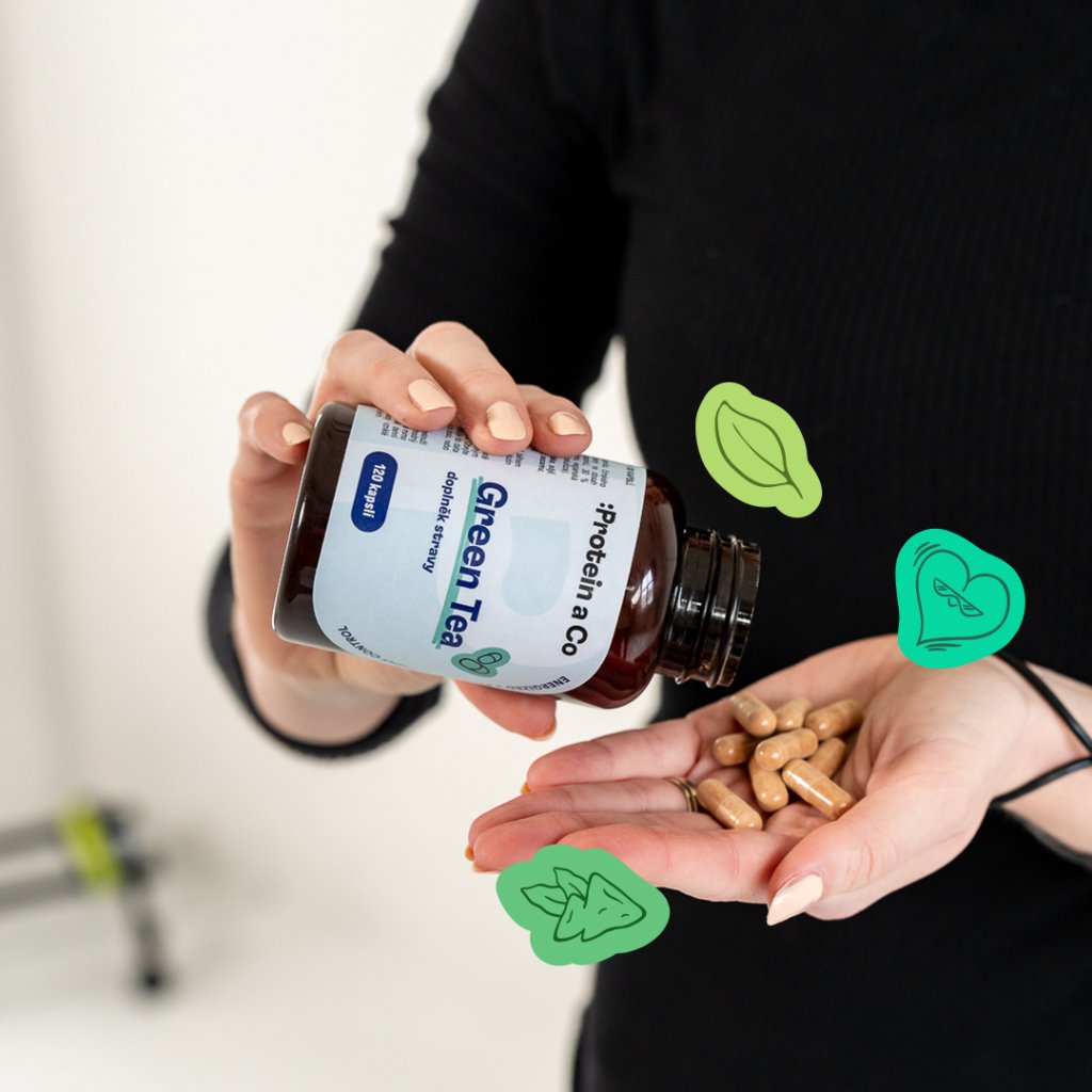 Wyciąg z liści herbaty (Camilla sinensis) standaryzowany na zawartość 80% polifenoli, 60% katechin, 30% galusan epigallokatechiny oraz 12% kofeiny; kapsułka wegańska (HPMC - hydroksypropylometyloceluloza).