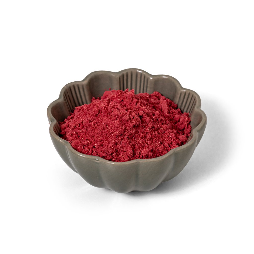 Owoce są pełne wszystkiego, co możliwe - głównie wody . Dlatego pozwoliliśmy im odpowiednio zamarznąć, a następnie je zmiażdżyliśmy . Zatem mimo, że proszek z liofilizowanych malin prawie nic nie waży , to i tak dostarczamy mnóstwo witamin, minerałów i błonnika.