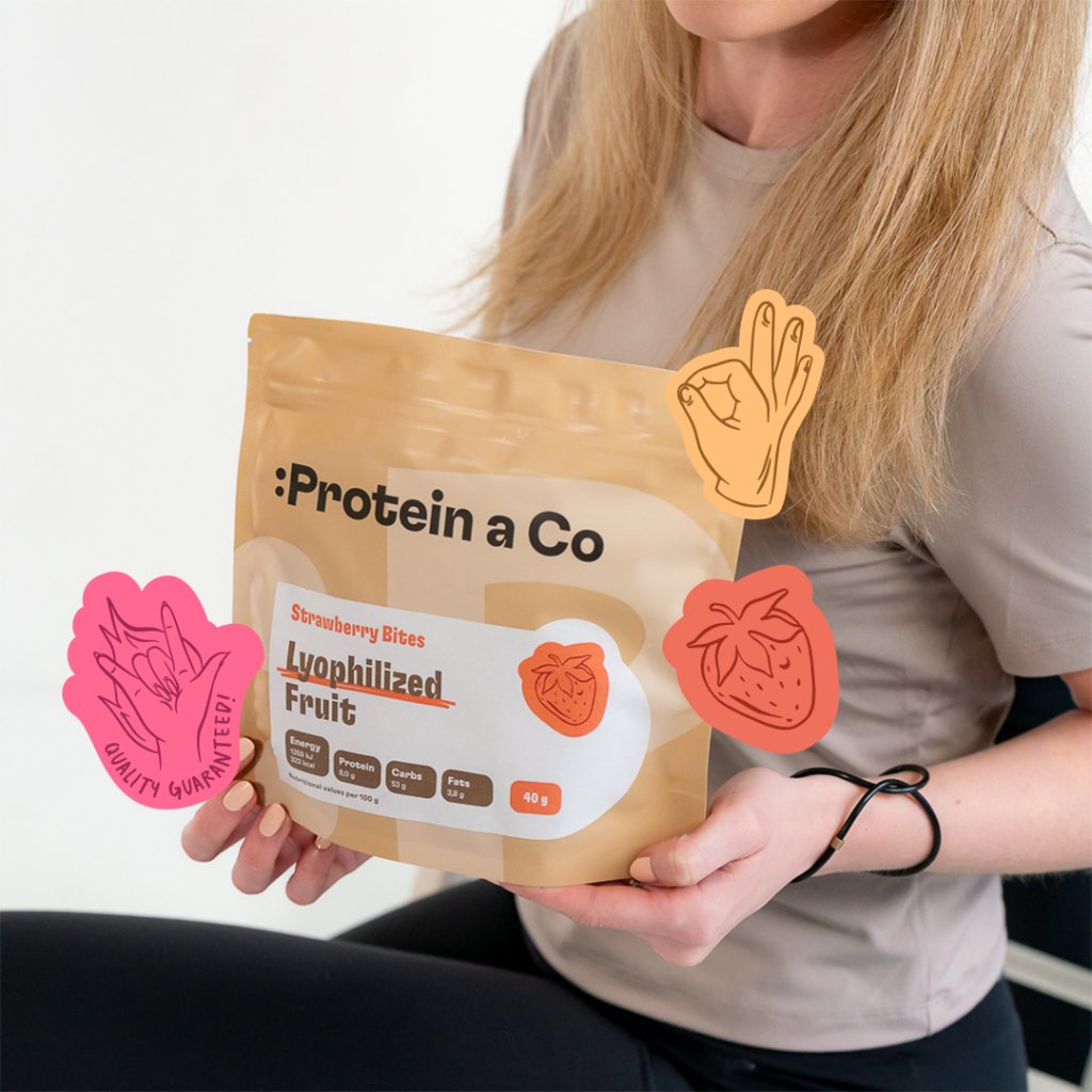 Owoce zawierają wszystko, co możliwe – głównie wodę. Dlatego pozwoliliśmy jej porządnie zamarznąć i zostało jej mniej niż 4%. Mimo, że liofilizowane truskawki prawie nic nie ważą, nadal zawierają mnóstwo witamin, minerałów i błonnika.